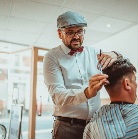 traditional men’s haircut and hairstyling using clippers and scissors.
